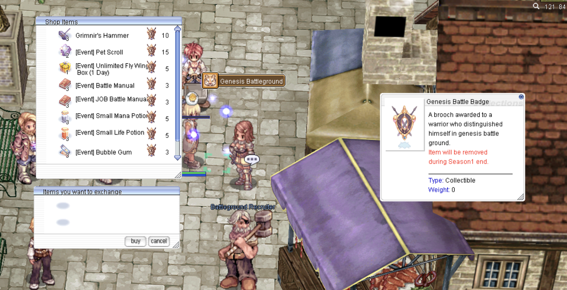 • Talk to the Genesis Battleground NPC (prontera 123/83).
