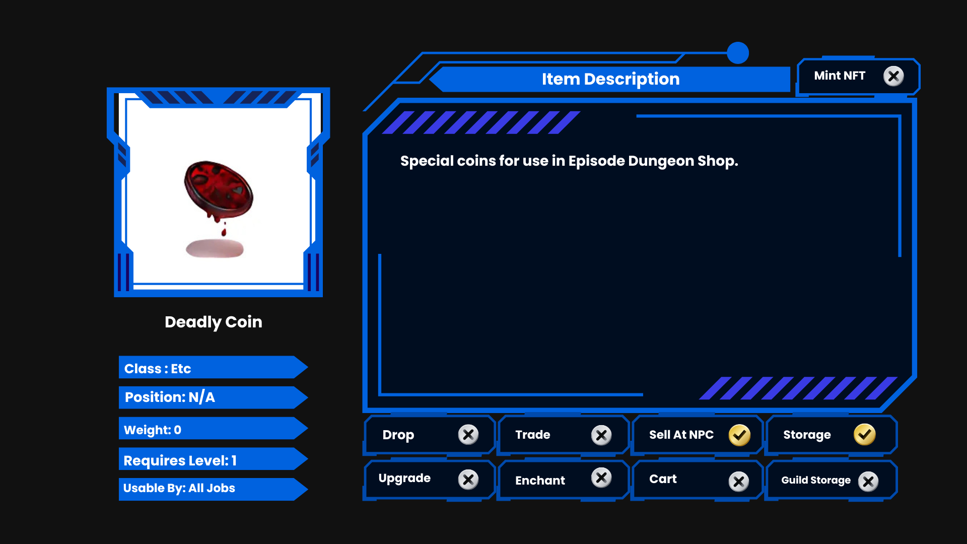 • Deadly Jewel Lv.1 / Cost: 8 Deadly Coins