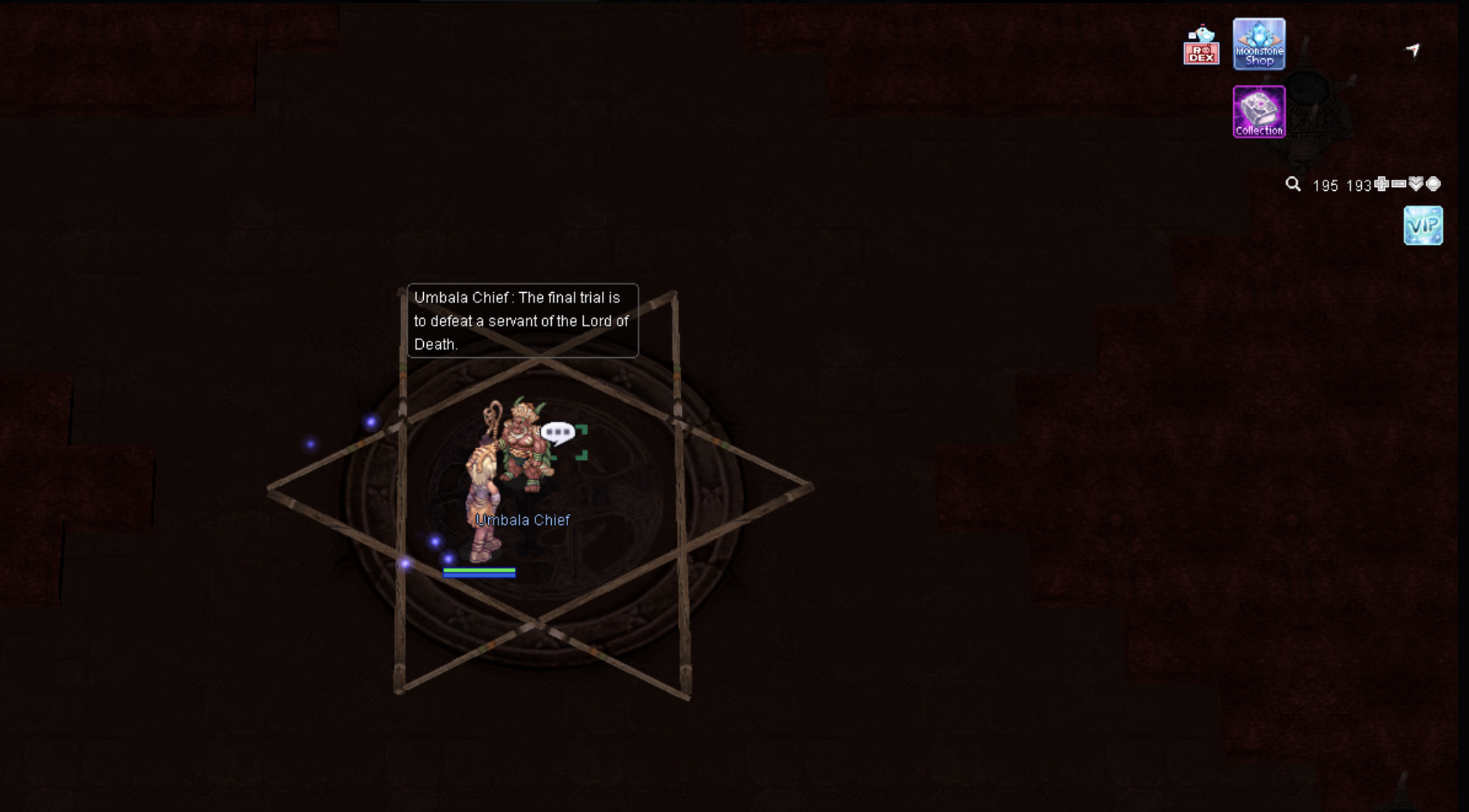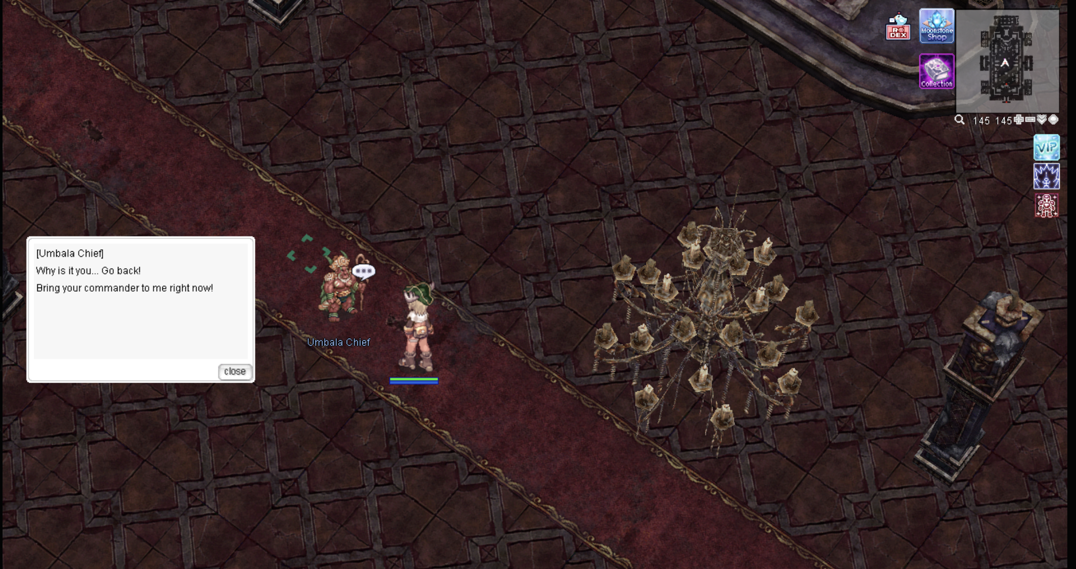 1. Talk to the NPC Umbala Chief [Location: prontera 122/260 ] to start the quest.