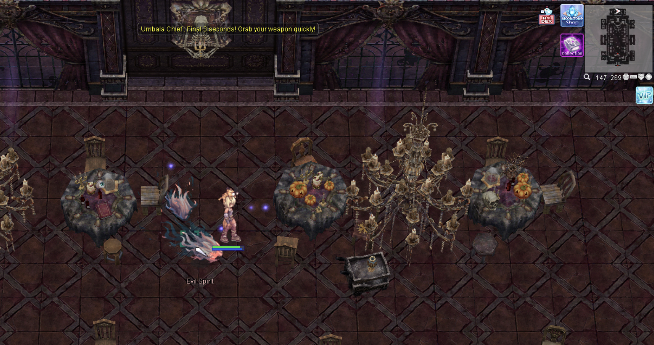 • Every 40 seconds, the boss will begin casting a One-Shot skill that can wipe out the entire party.