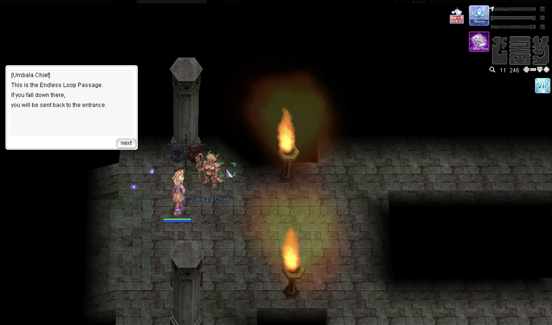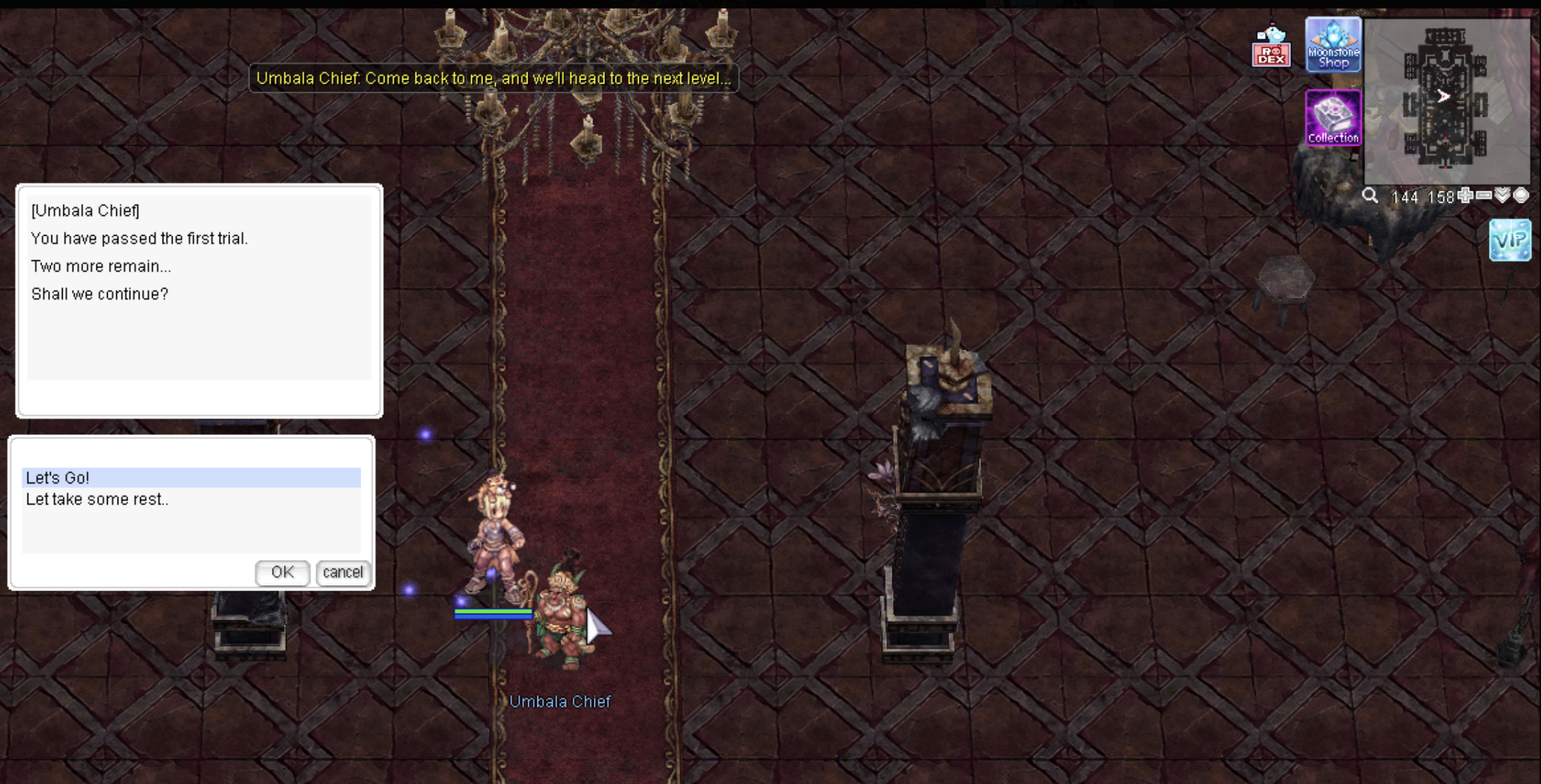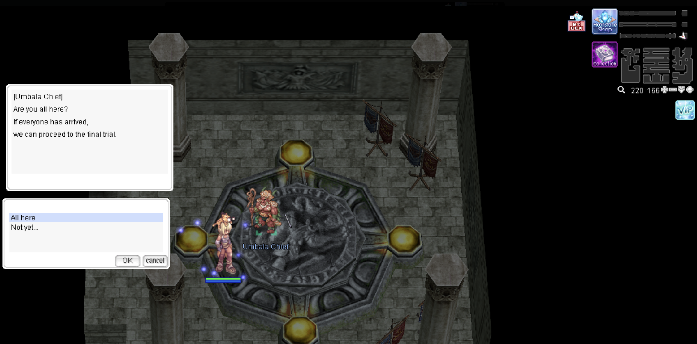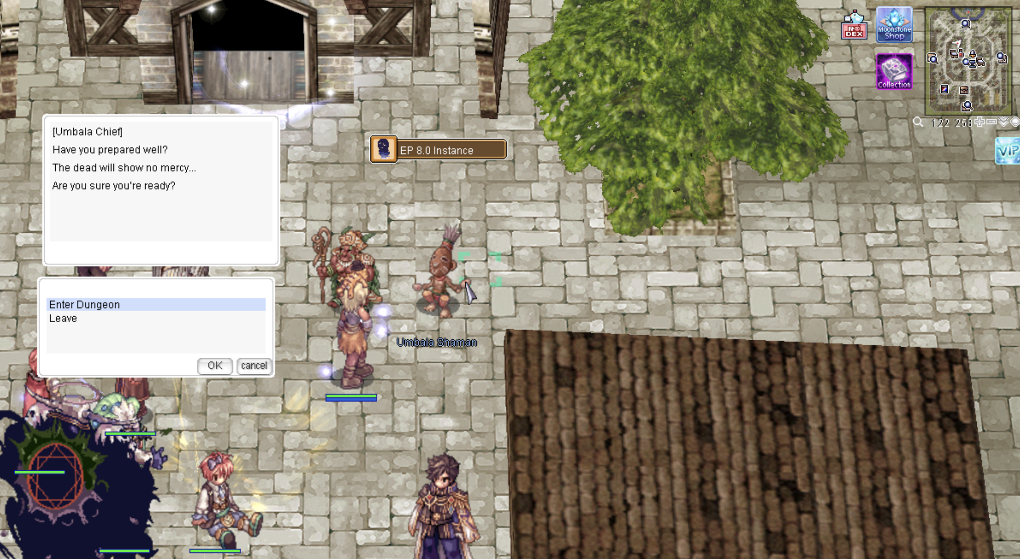 2. Then talk to the NPC Umbala Shaman [Location: prontera 124/260] to create an instant dungeon.