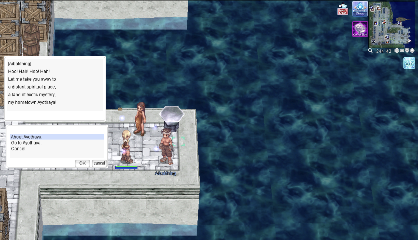 He’ll offer you a ride to Ayothaya for 10,000 Zeny. -