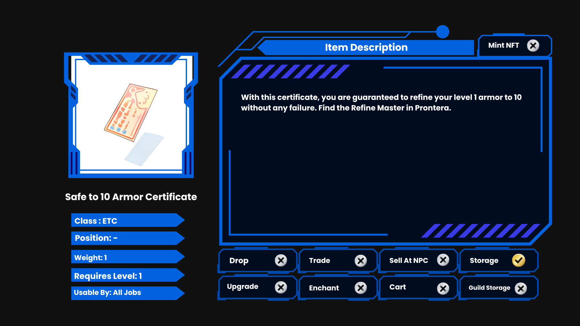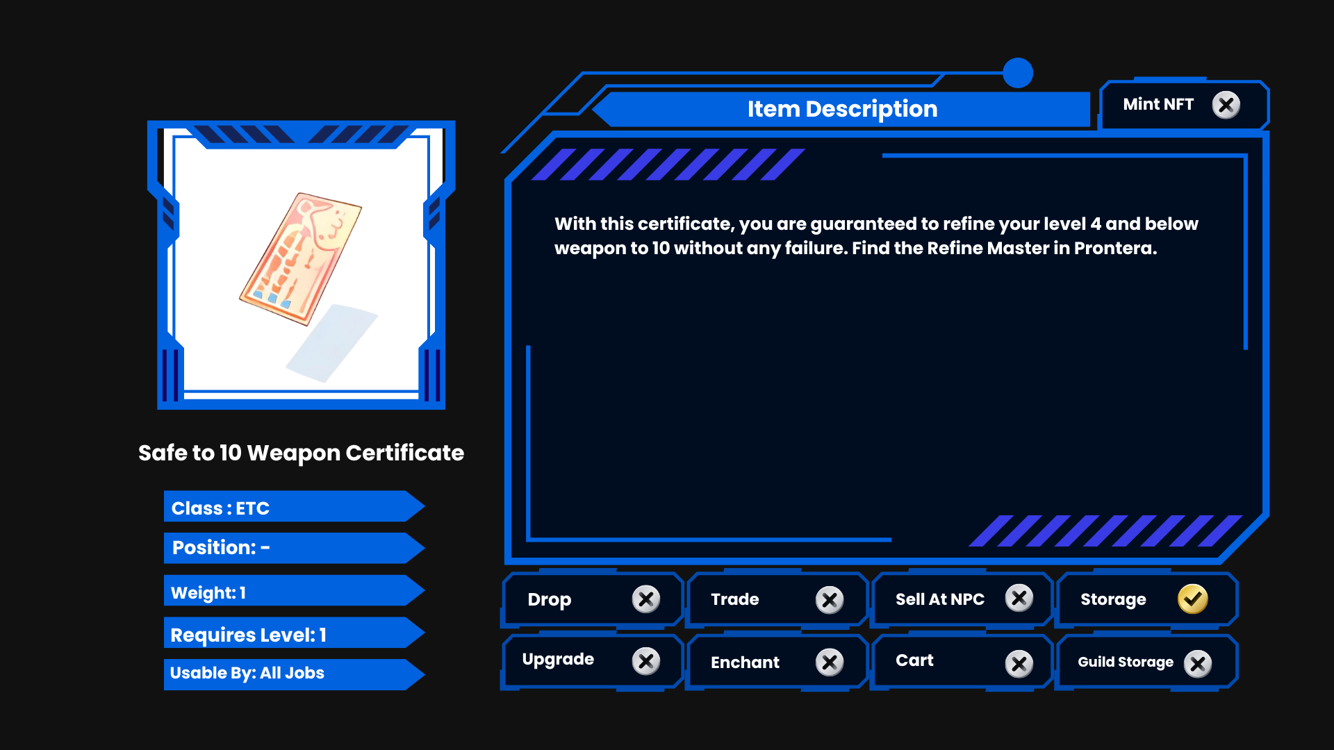 Safe to 9 Weapon Certificate | Headgear Challenge 1ea | 11 | 1 | 1 / ID |