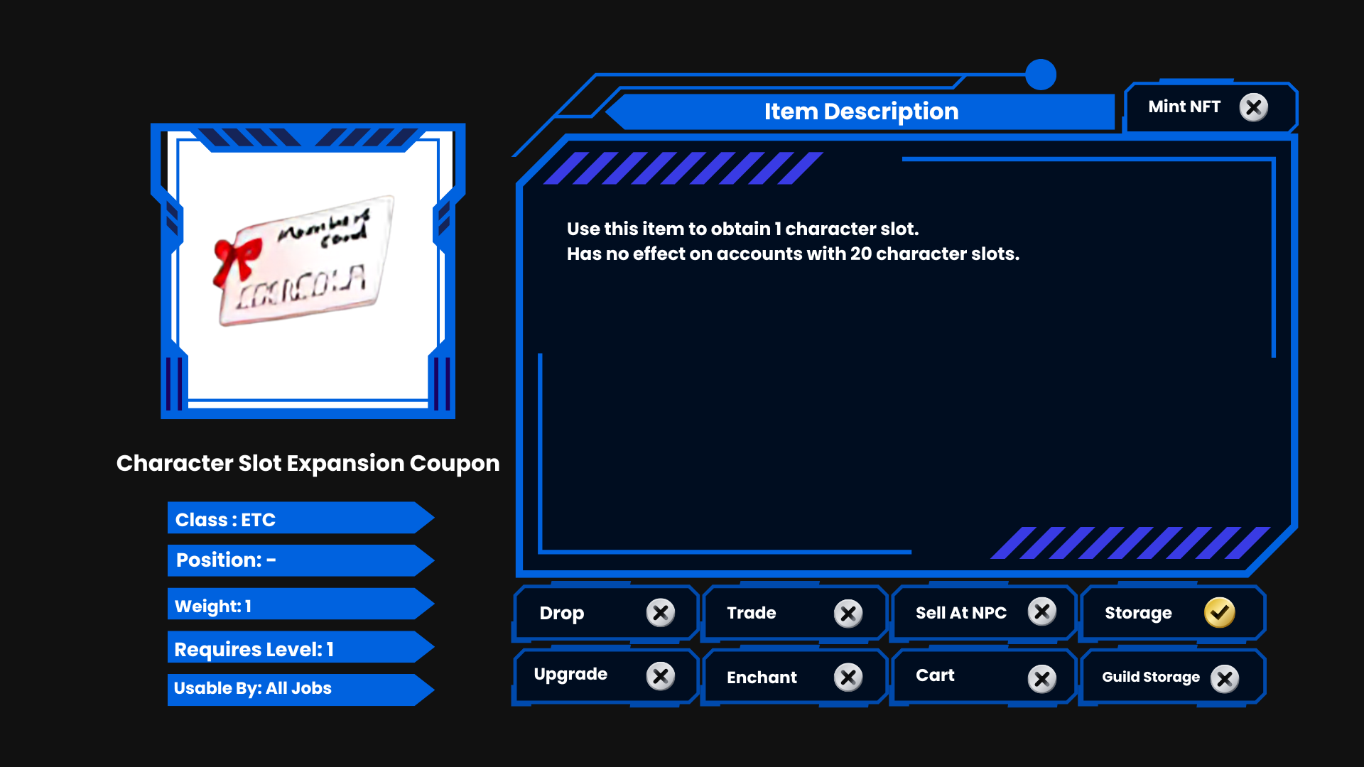 Character Slot Expansion Coupon | Weapons Challenge 1ea | 9 | 1 | 1 / ID |