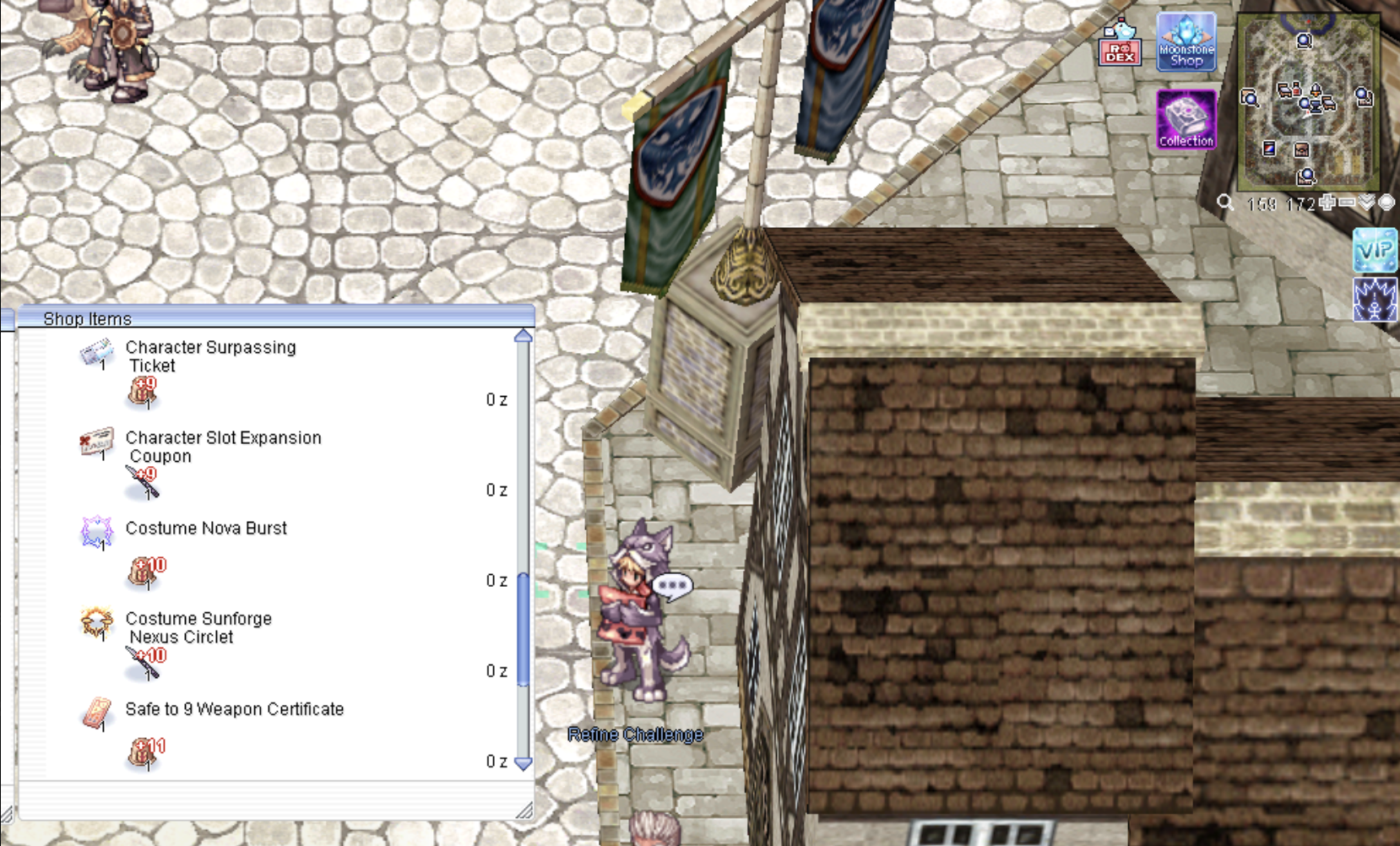 Exchange Rewards >> | NPC Refine Challenge: Prontera at coordinates 164, 171. |