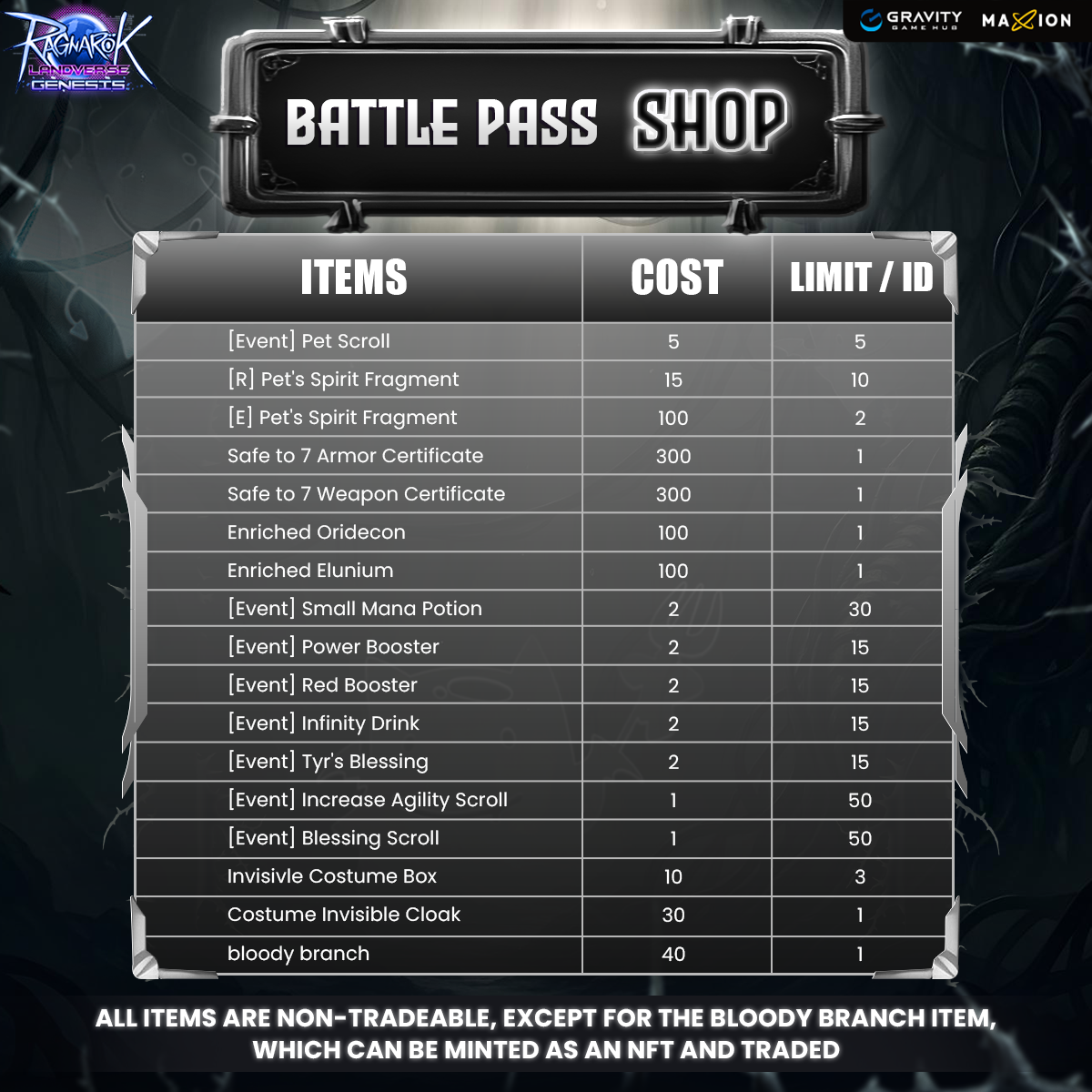 🌟 Start your journey by speaking to NPC Battlepass in Izlude (117, 220) and unlock your Battle Pass using Silvervine Fruit.