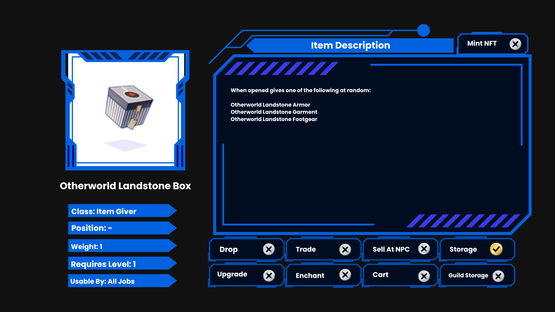 | Otherworld Landstone Box | Dirt Coin 70 ea | 500,000 | 1 |