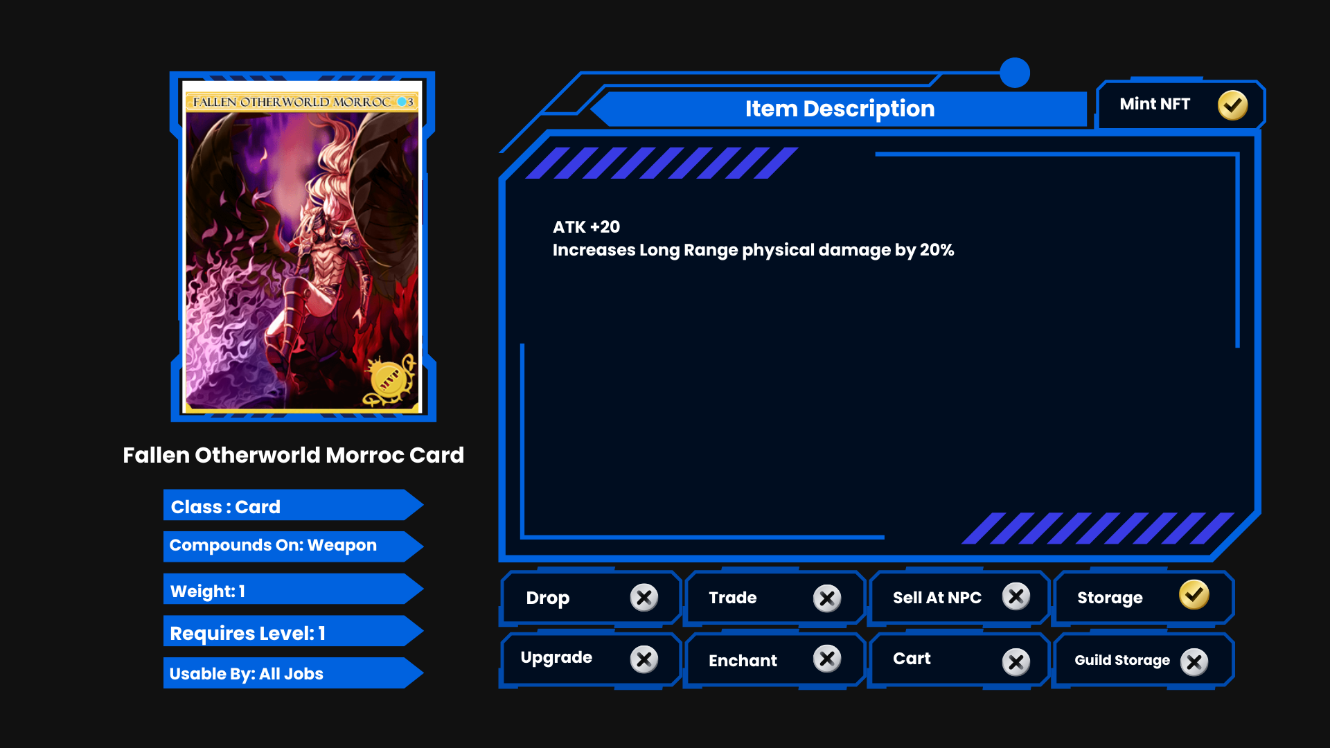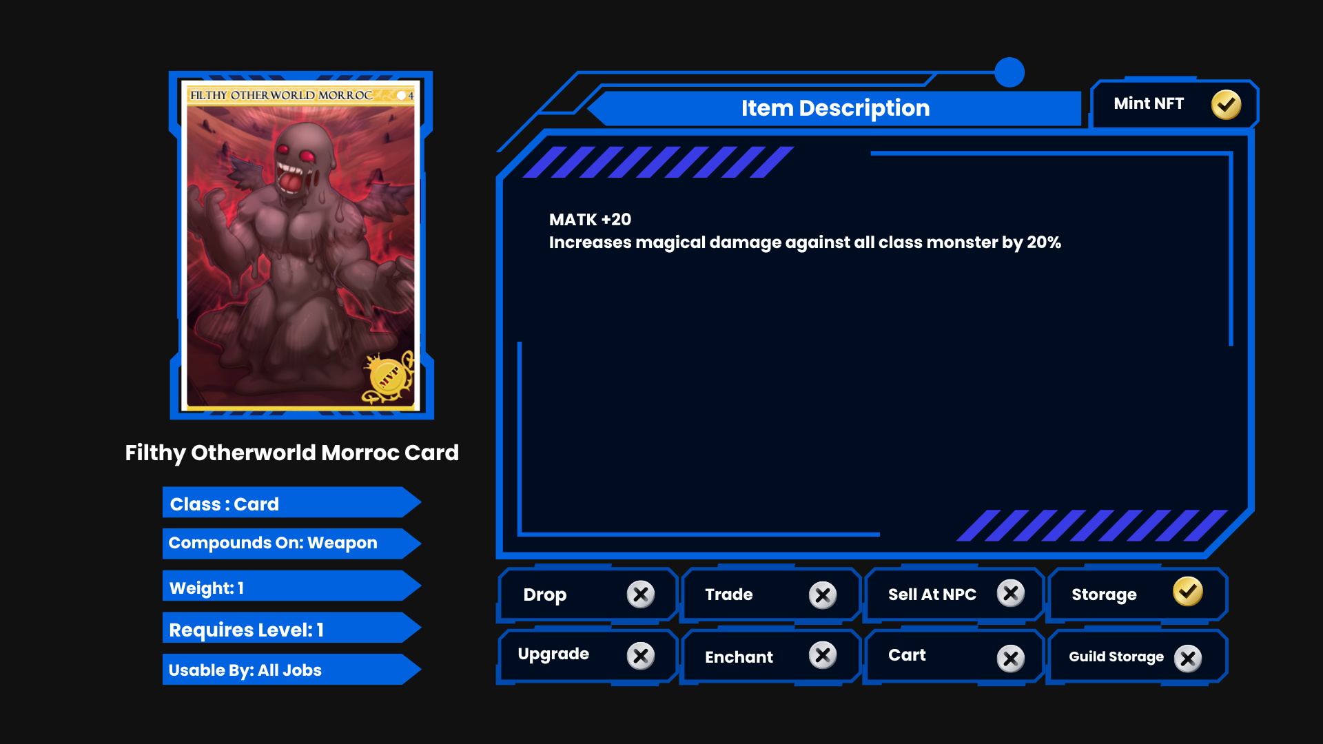 | Oridecon | Fallen Otherworld Morroc Card | Oridecon | Filthy Otherworld Morroc Card | Oridecon | Invert Otherworld Morroc Card |