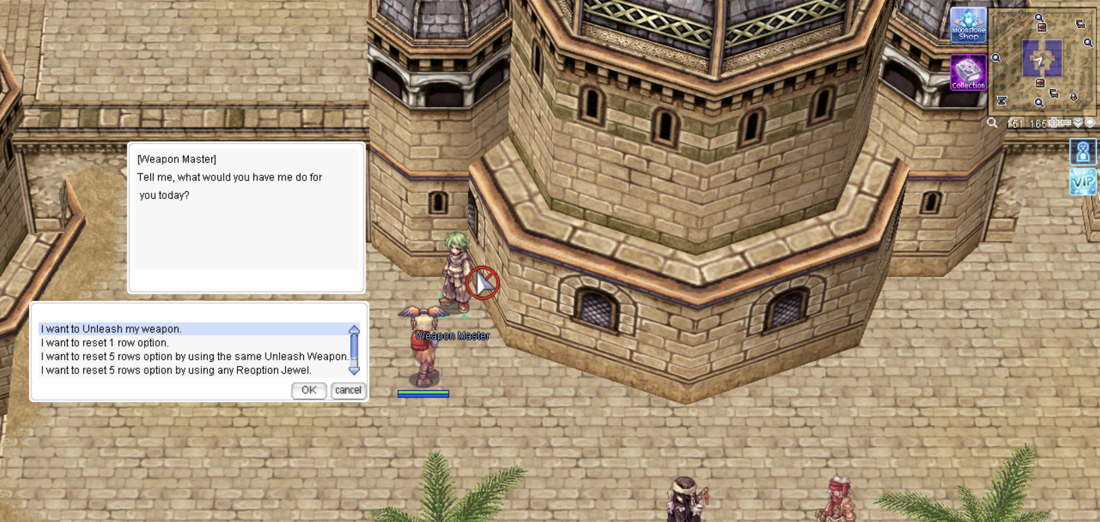 - Once a weapon has been Unleashed, you can randomize new Unleash Options (from the new option set) at the Weapon Master NPC (Location: morocc 152, 168).