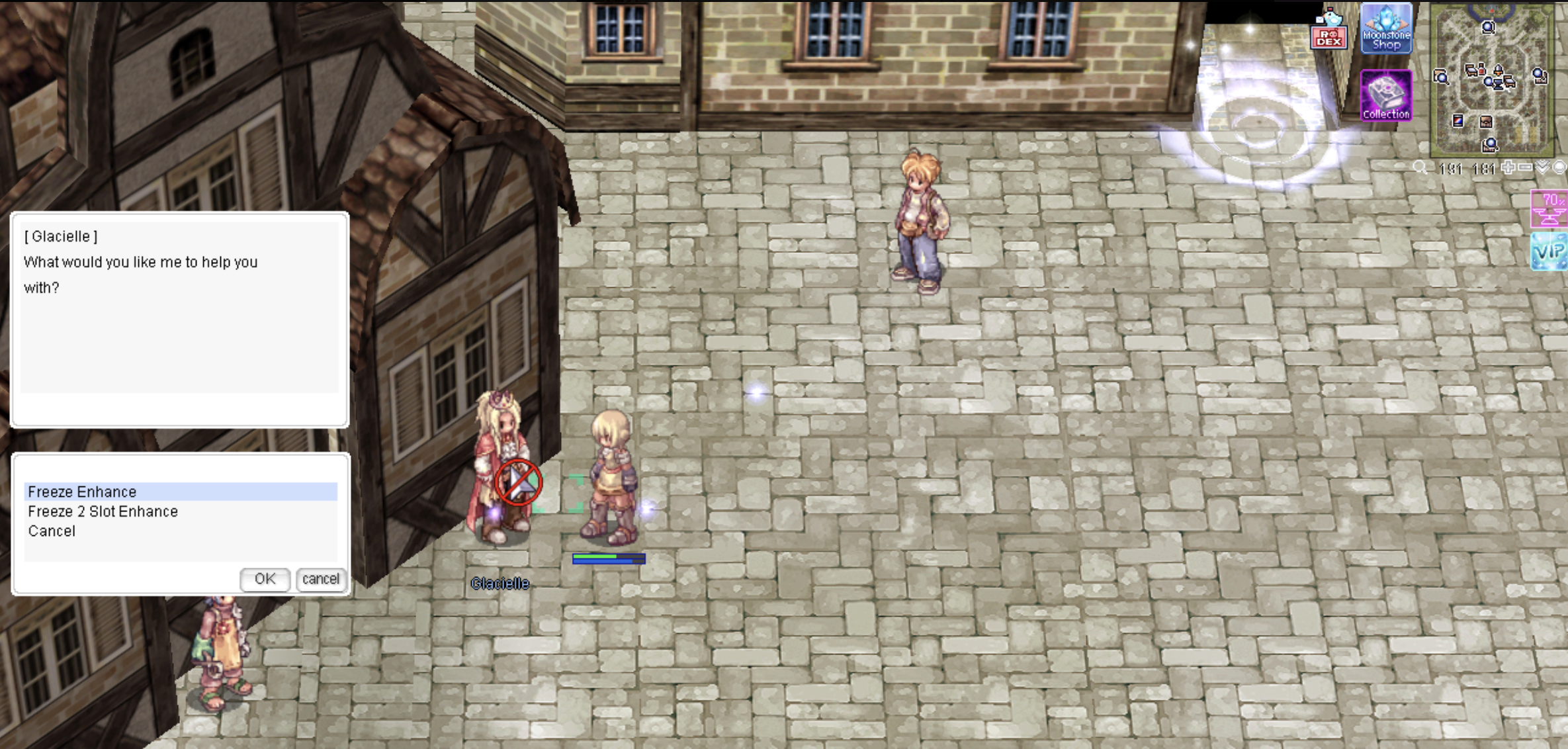 Requirement : Freeze Enchant Crystal 1 ea + 50,000 Zeny + 50 Adamantine Blessing