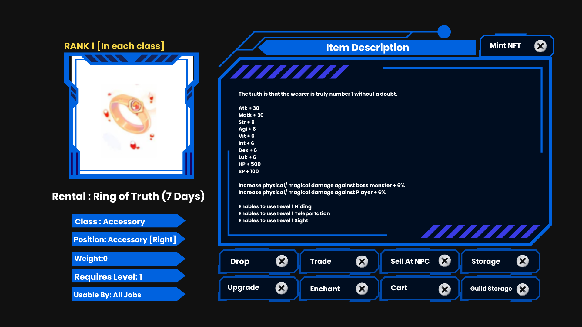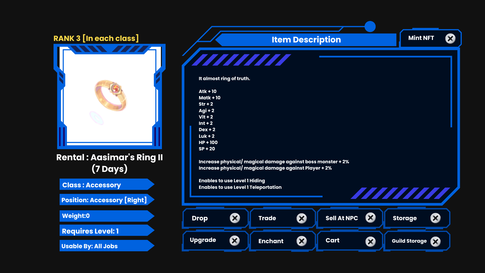 | Title : Path Traveler I Atk + 3 Matk + 3 Hit + 3 Flee + 3 |