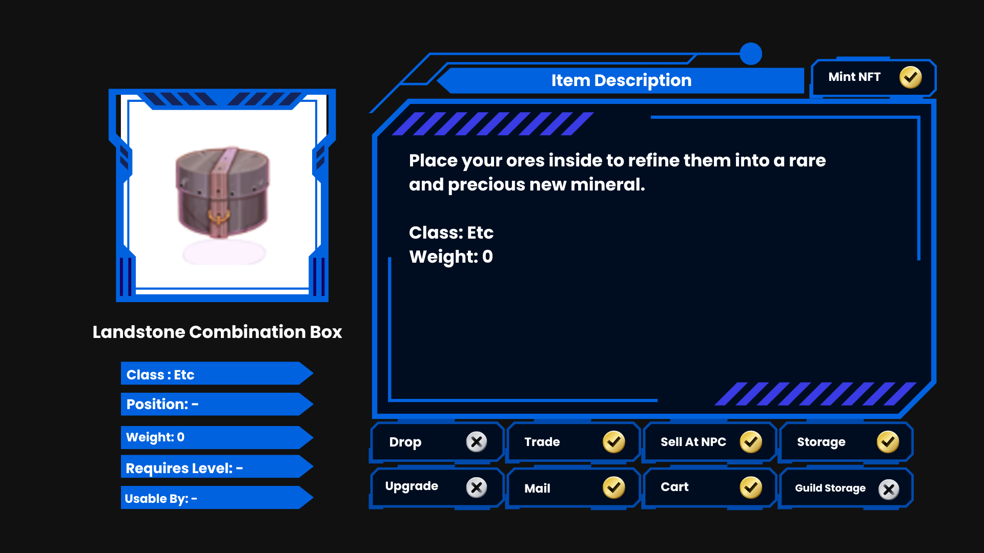 Note: More Landstone upgrade options will be added in future patches as appropriate.