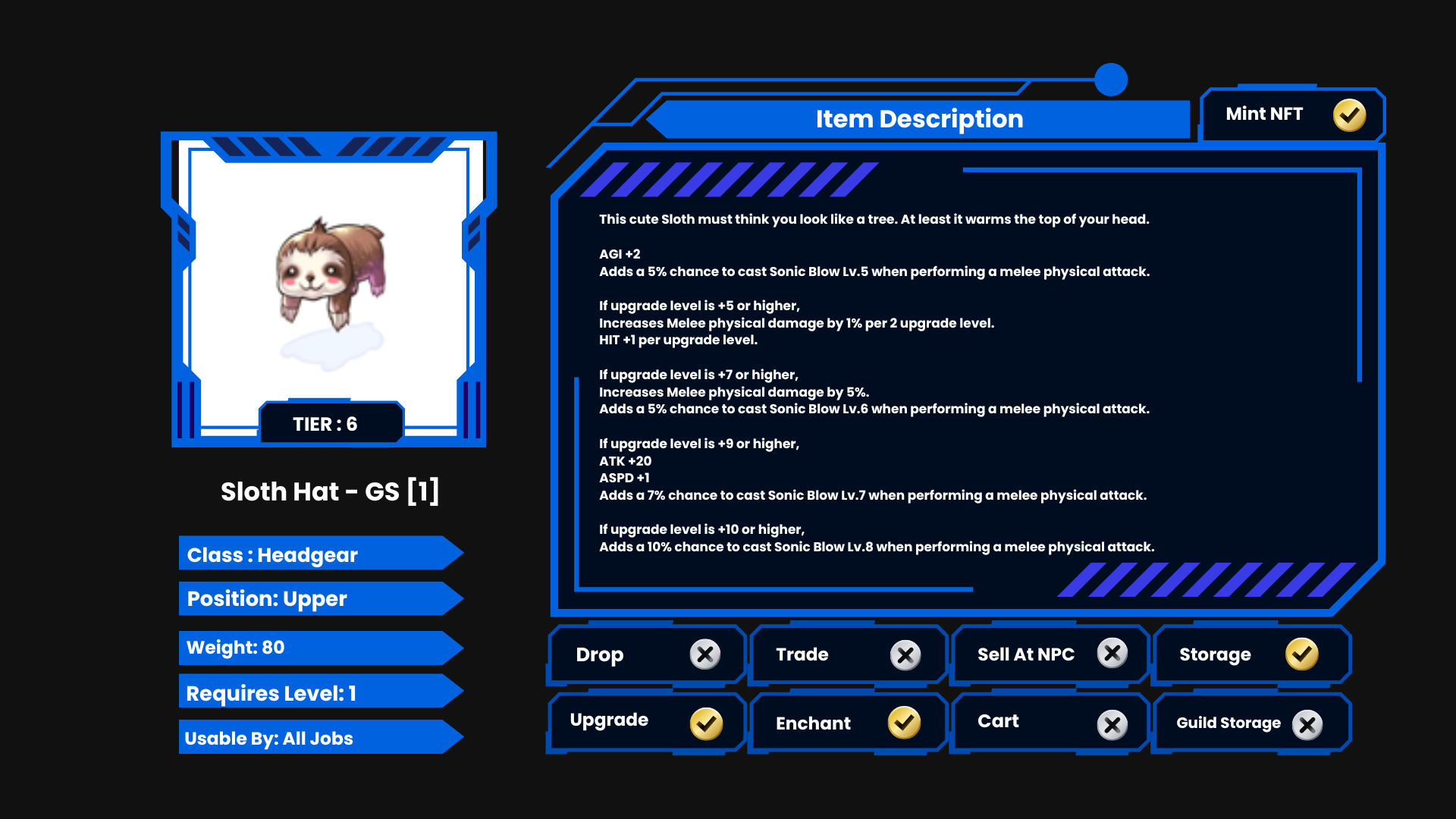 🦥 Sloth Hat → Sloth Hat – GS (Tier 6)