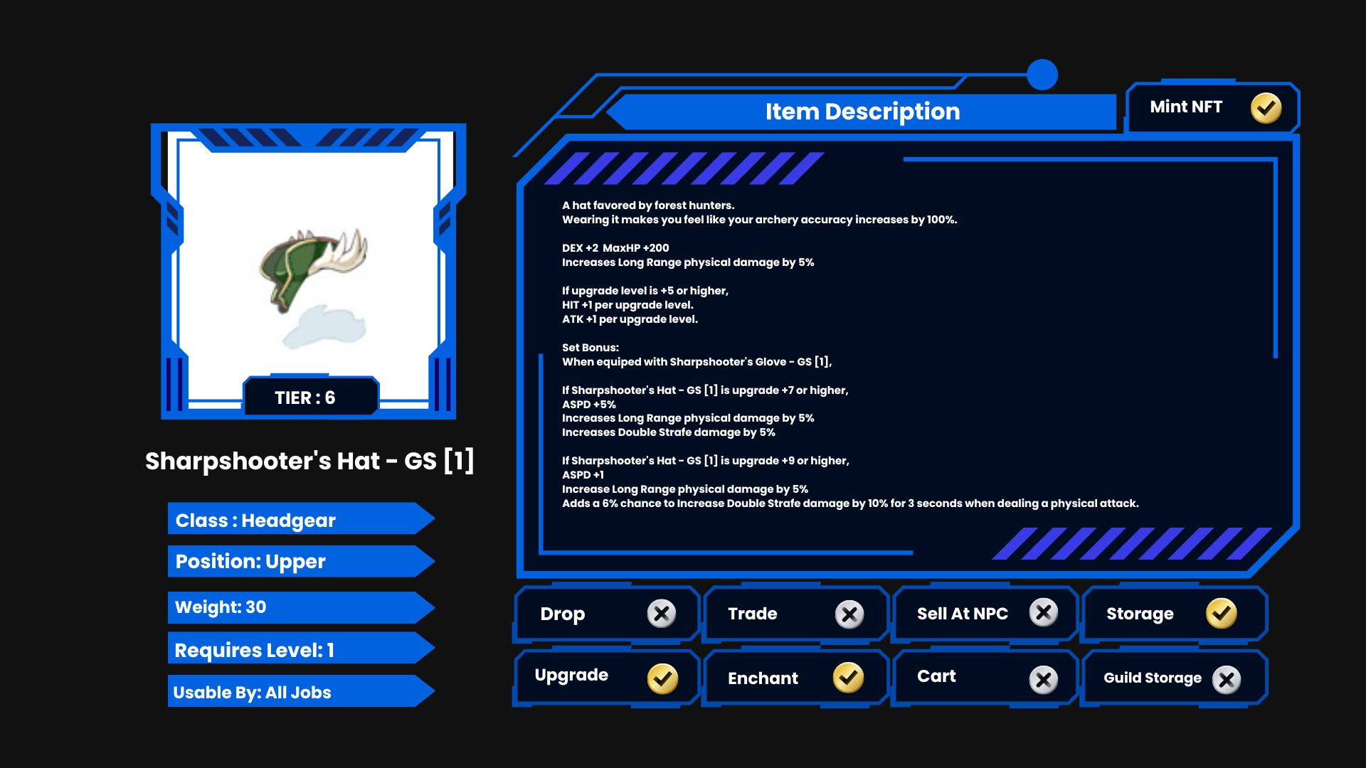 🪖Sharpshooter’s Hat → Sharpshooter’s Hat – GS [1] (Tier 6)