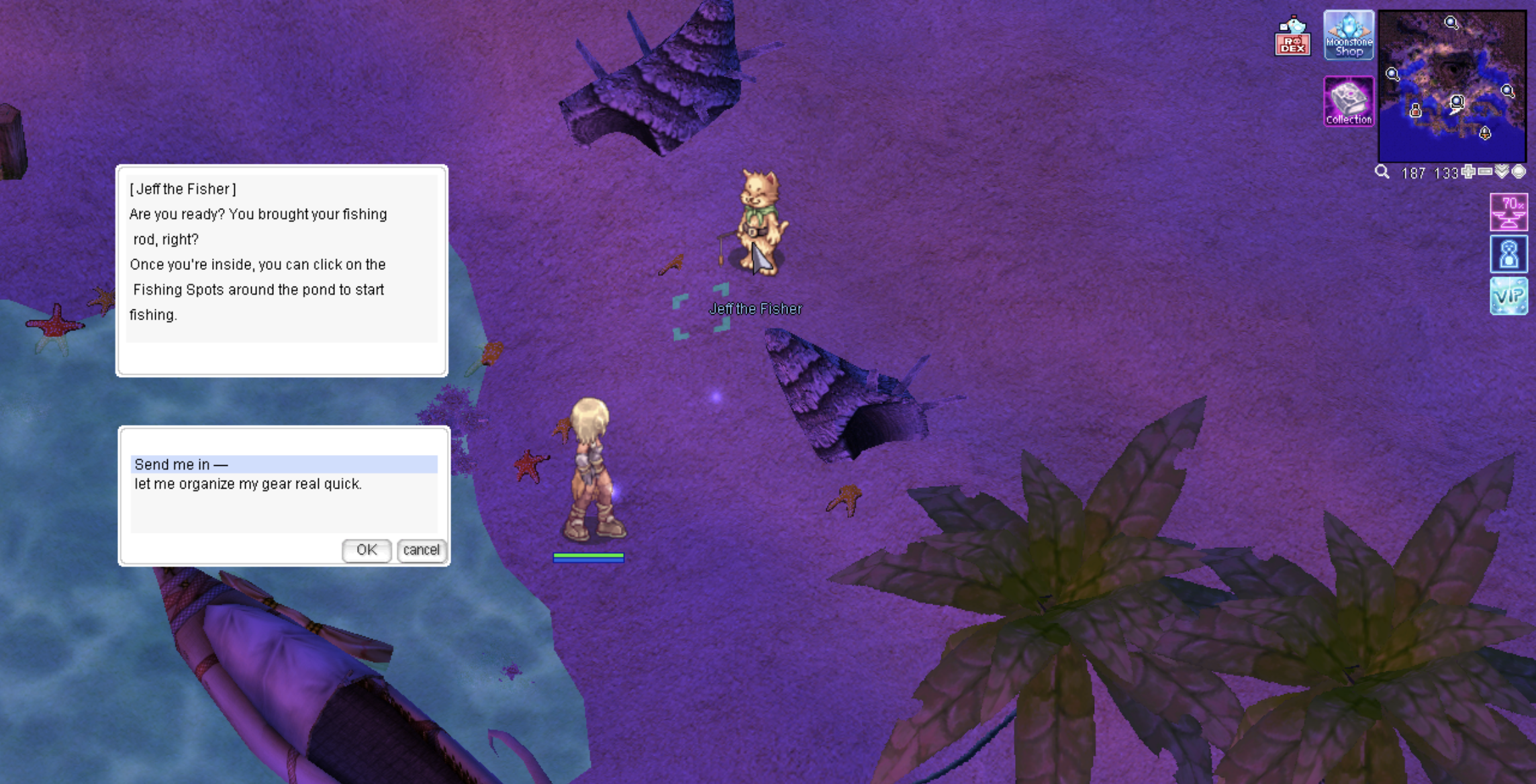 • To enter the fishing area, a fee of 50,000 Zeny is required.