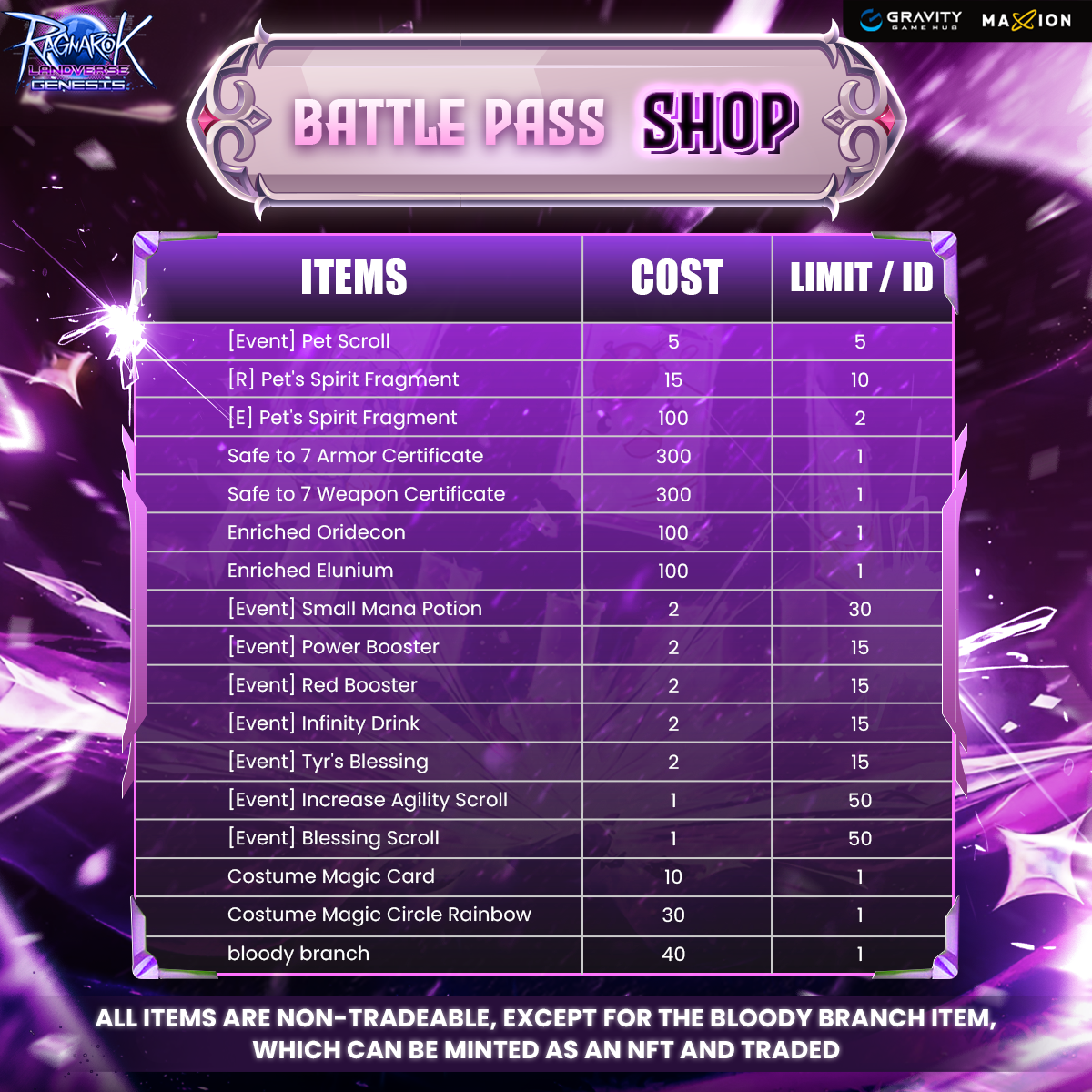 🌟 Start your journey by speaking to NPC Battlepass in Izlude (117, 220) and unlock your Battle Pass using Silvervine Fruit.
