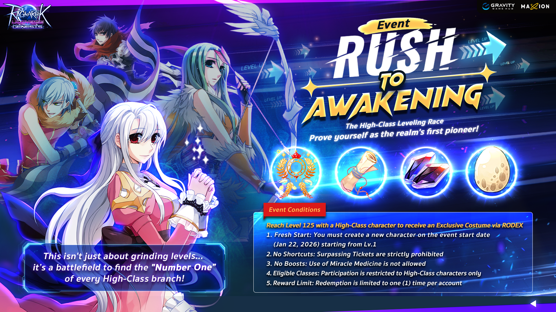 Only Rank 1 (The very first player) of each High-Class job will receive the rewards. Rewards can be claimed once per account.