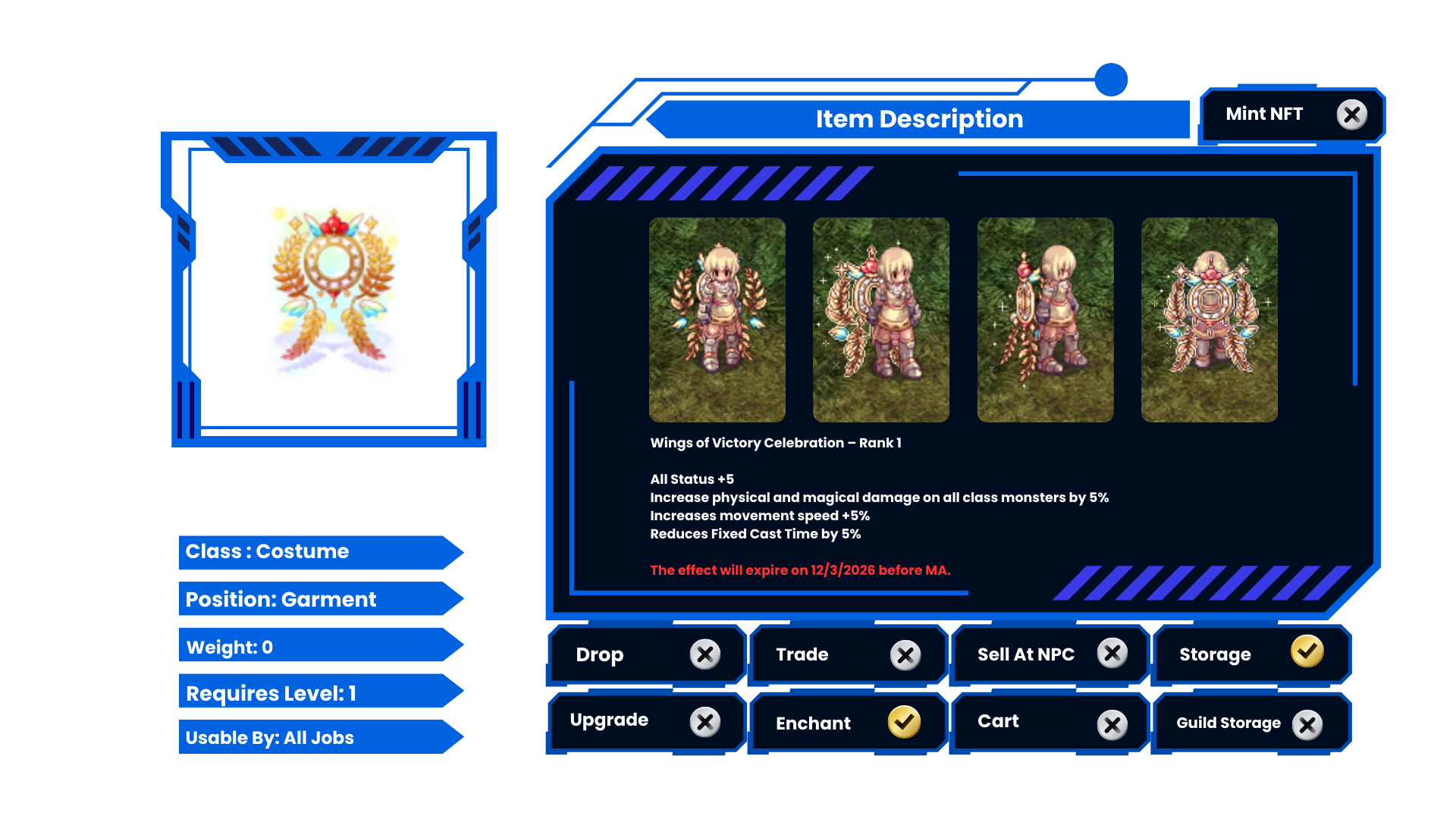 Emperor Wings Costume 1 Bound (Cannot trade/drop/sell).