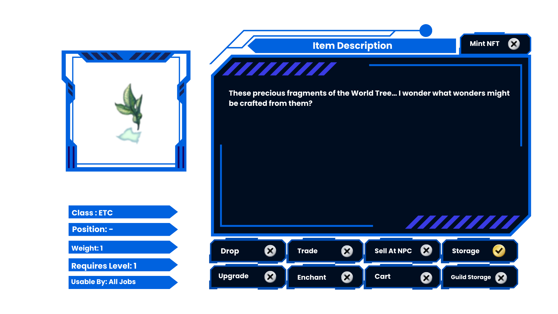Combine these items to attempt to create the [Event] Ring of World Tree [1]. No Zeny required. |