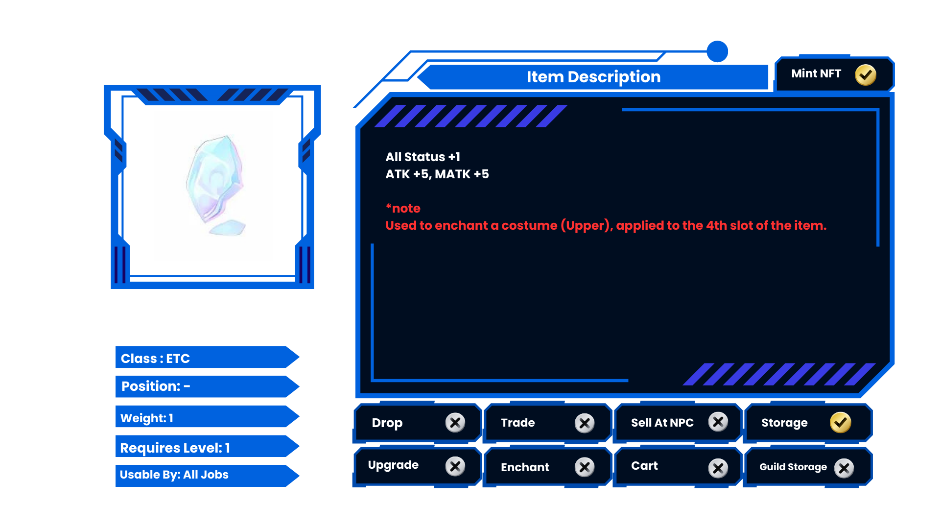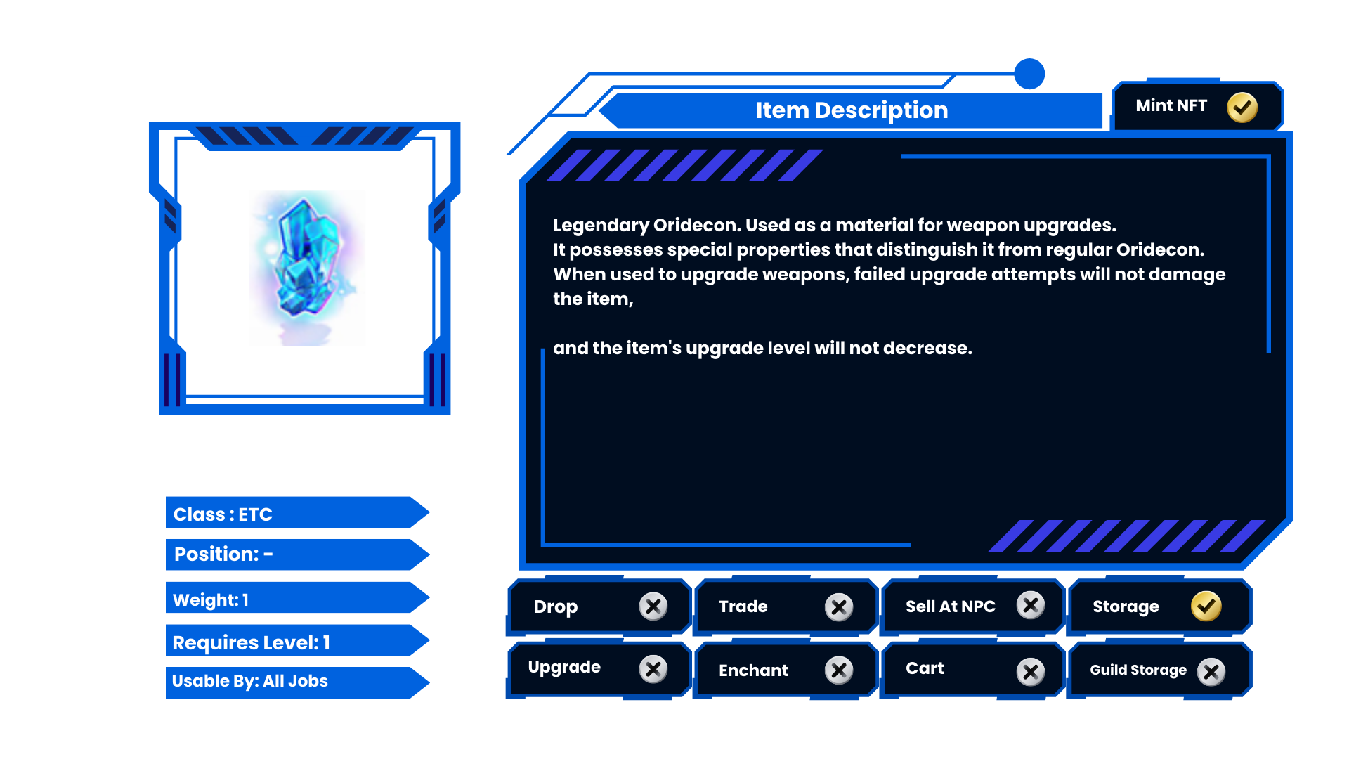 Provides the same success rate as Enriched Elunium and Enriched Oridecon.